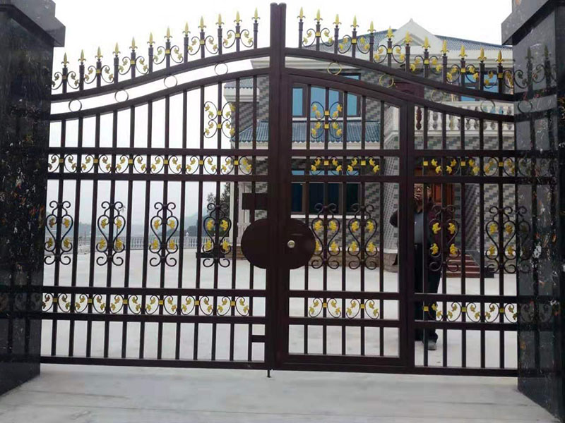 鐵藝從結(jié)構(gòu)上區(qū)分的話就分為兩種:1、欄桿通透型:主要做法為以尺寸較大的方管做大門(mén)的框架,然后使用鐵藝配件直接在框架中拼接鑲嵌。這種通透型的鐵藝大門(mén)的性能更加傾向于美觀,而且材料使用量比較少,適合做尺寸比較大的門(mén),比如小區(qū)大門(mén),別墅花園門(mén)等。2、實(shí)心門(mén)扇型